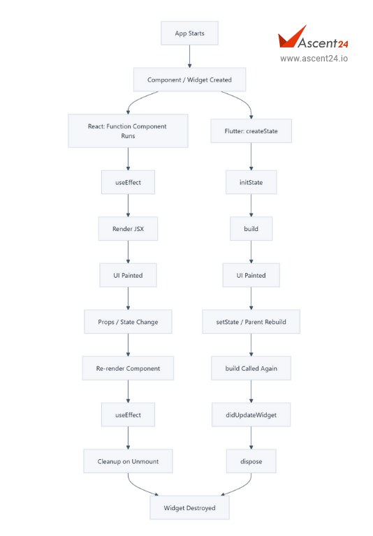 This article compares the latest React lifecycle model (Hooks-based) with the Flutter widget lifecycle, in a way that helps React developers transfer existing knowledge instead of starting from zero.